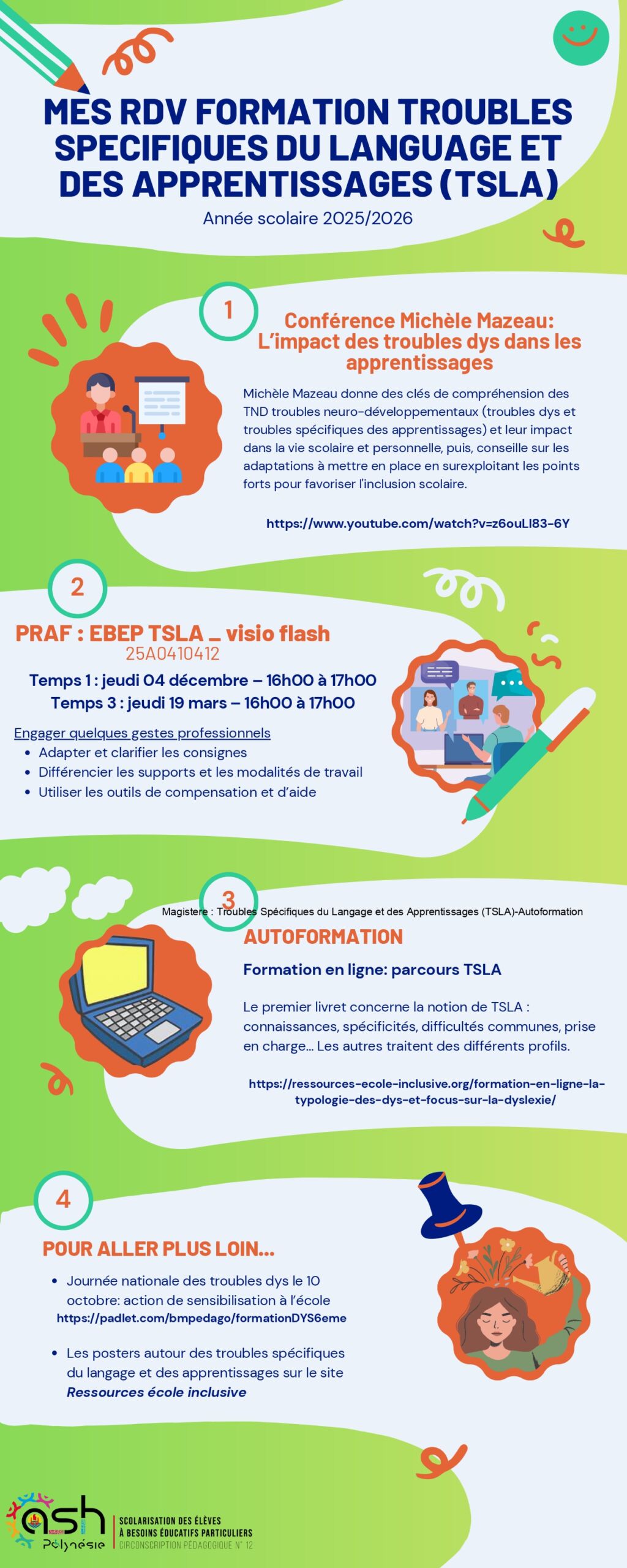 Dans le cadre du parcours MES RDV FORMATION – Troubles Spécifiques du Langage et des Apprentissages (TSLA), nous vous invitons à participer au Temps 1 : EBEP TSLA, une visio flash qui se tiendra :