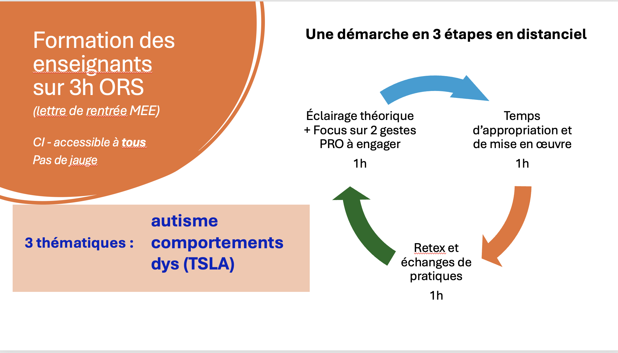 Des rendez-vous incontournables en 2025/2026 Parce qu’enseigner, c’est aussi apprendre à mieux comprendre la diversité des élèves, la circonscription pédagogique ASH propose cette année trois parcours de formation riches et concrets autour des troubles du spectre de l’autisme (TSA), des difficultés à expression comportementale (TCC), et des troubles spécifiques du langage et des apprentissages (TSLA).