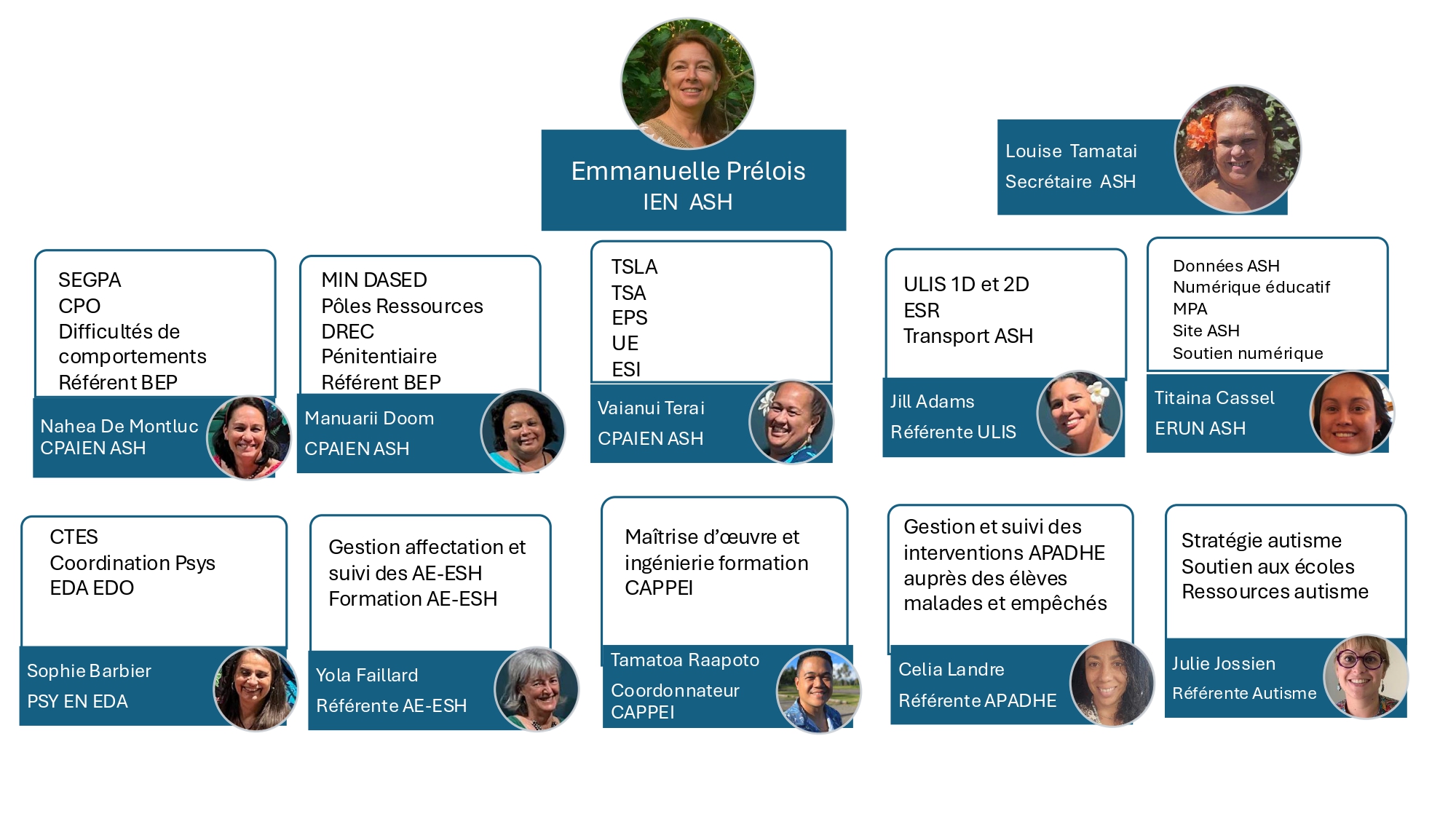 Avec le pilotage de l’inspectrice, l’équipe regroupe des professionnels aux missions complémentaires, mobilisés pour accompagner les écoles, les enseignants, les élèves et leurs familles.